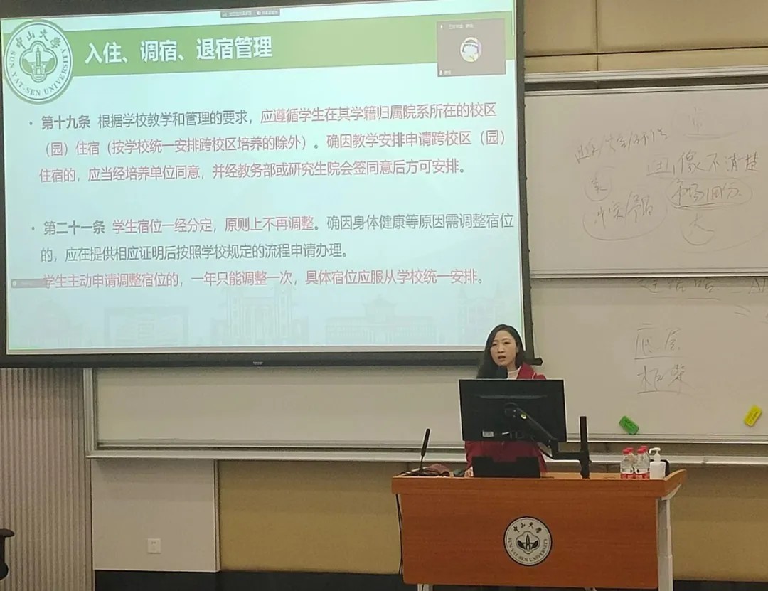 安全无小事,严把第一课。为进一步提升与筑牢学生的安全意识,增强自我保护的能力,3月5日下午,我院特邀请保卫处张水营老师、新港派出所中大社区民警倪明飞警官,在南校园389栋106讲学厅开展了一场别开生面的安全教育专题培训,由辅导员郑嘉茵老师对《william威廉英国学生宿舍管理办法》和《william威廉英国学生处分管理规定》进行宣讲解读,加强学生行为规范教育。宣讲会由william英国中文党委副书记袁婷主持,学院学生与实验室管理的教职员工参加了会议。