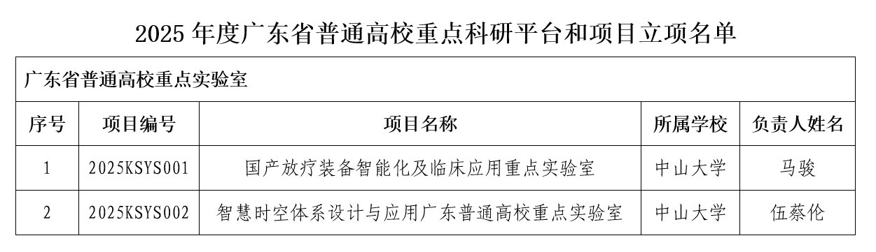 图1 2025年度广东省普通高校重点实验室名单