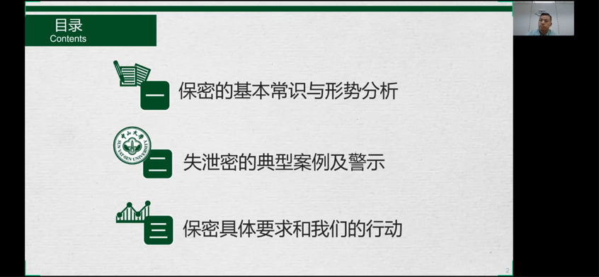 学院党总支保密委员张英朝教授向同学们进行保密教育,他从保密的基本常识与形势、典型案例分析、保密的具体要求以及个人行为三个方面对同学们进行保密培训,希望同学们都能学好保密知识,筑牢自己的保密意识。